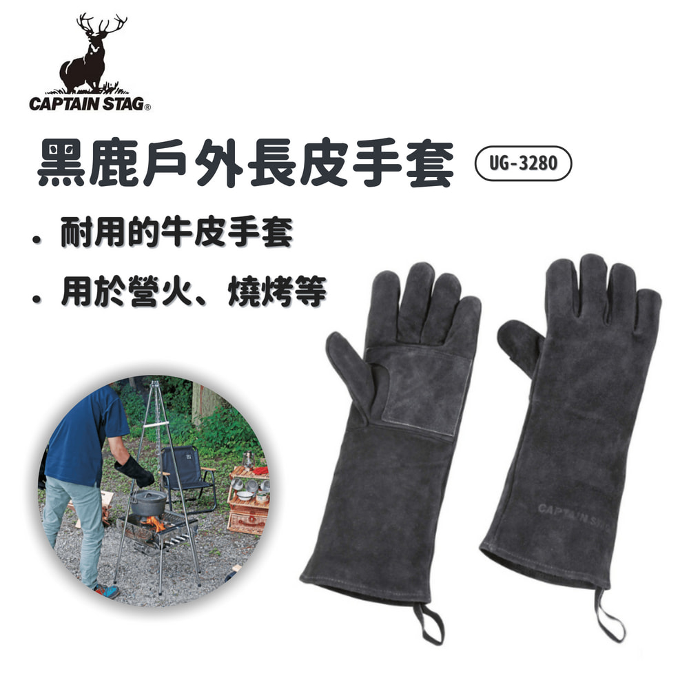 CAPTAIN STAG 日本 | UG-3280 黑鹿戶外長皮手套 |牛皮 燒烤 鑄鐵鍋用 隔熱手套