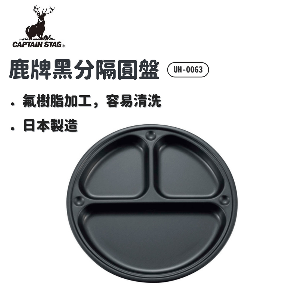 CAPTAIN STAG 日本 | UH-0063 鹿牌黑分隔圓盤22cm |餐具 餐碗盤子|