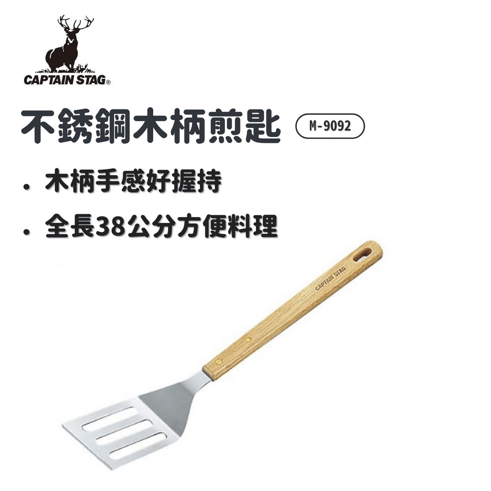 CAPTAIN STAG 日本 | M-9092 鹿牌不銹鋼木柄煎匙│鍋鏟 炒菜鏟 煎鏟│