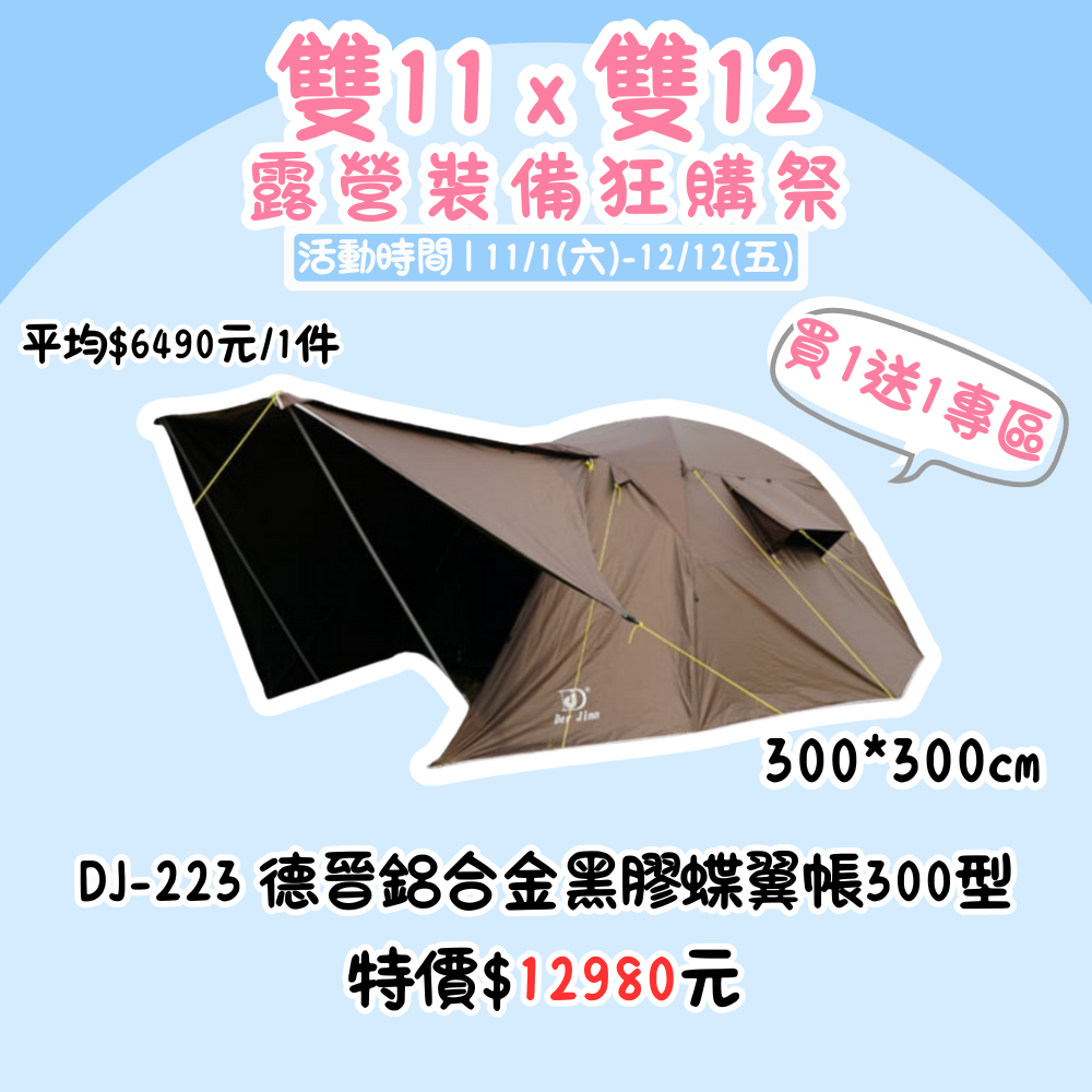 雙11X雙12,露營裝備狂購季 | DJ-223鋁合金圓頂帳篷300型 買一送一『活動時間:𝟭𝟭/𝟬𝟭-𝟭𝟮/𝟭𝟮』