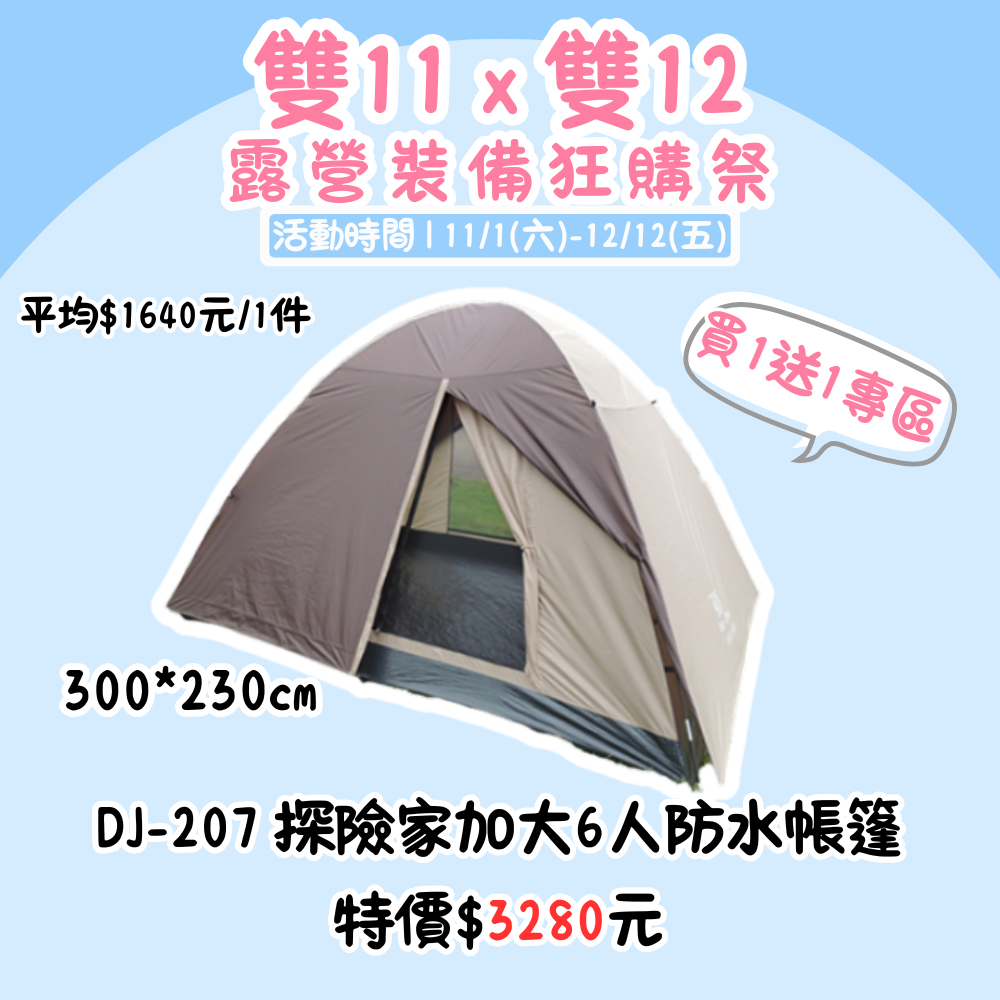 雙11X雙12,露營裝備狂購季 | DJ-207 探險家加大6人防水帳篷 買一送一『活動時間:𝟭𝟭/𝟬𝟭-𝟭𝟮/𝟭𝟮』