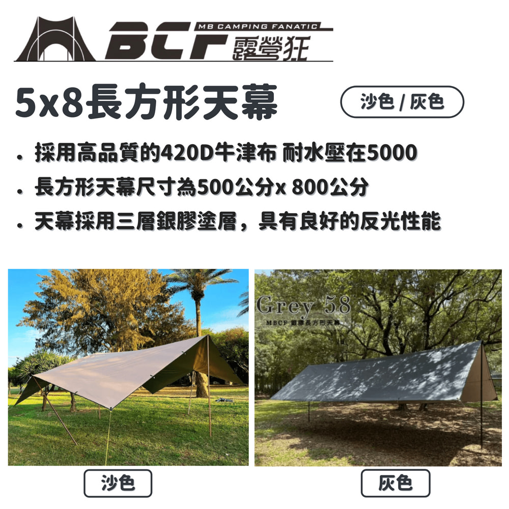 MBCF 露營狂 | 5x8長方形天幕|卡其沙/灰色