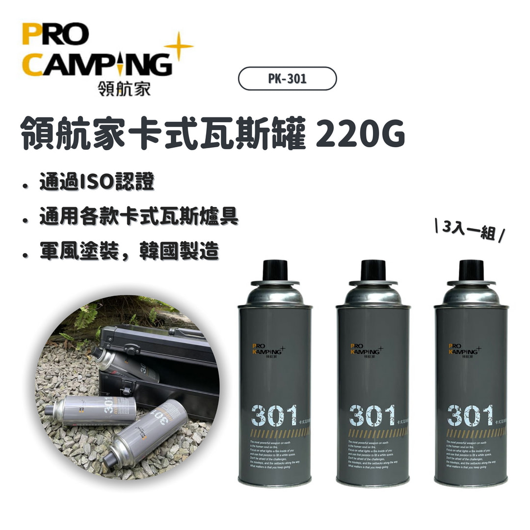Pro Kamping 領航家 | PK-301 領航家卡式瓦斯罐220g(3罐)| 通用瓦斯罐 卡式瓦斯爐