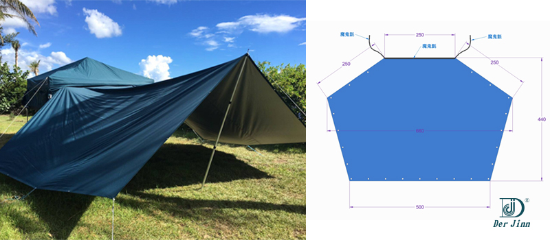 四周用同種面料包寬邊,在寬邊上砸環扣,通過粘扣和主帳連接