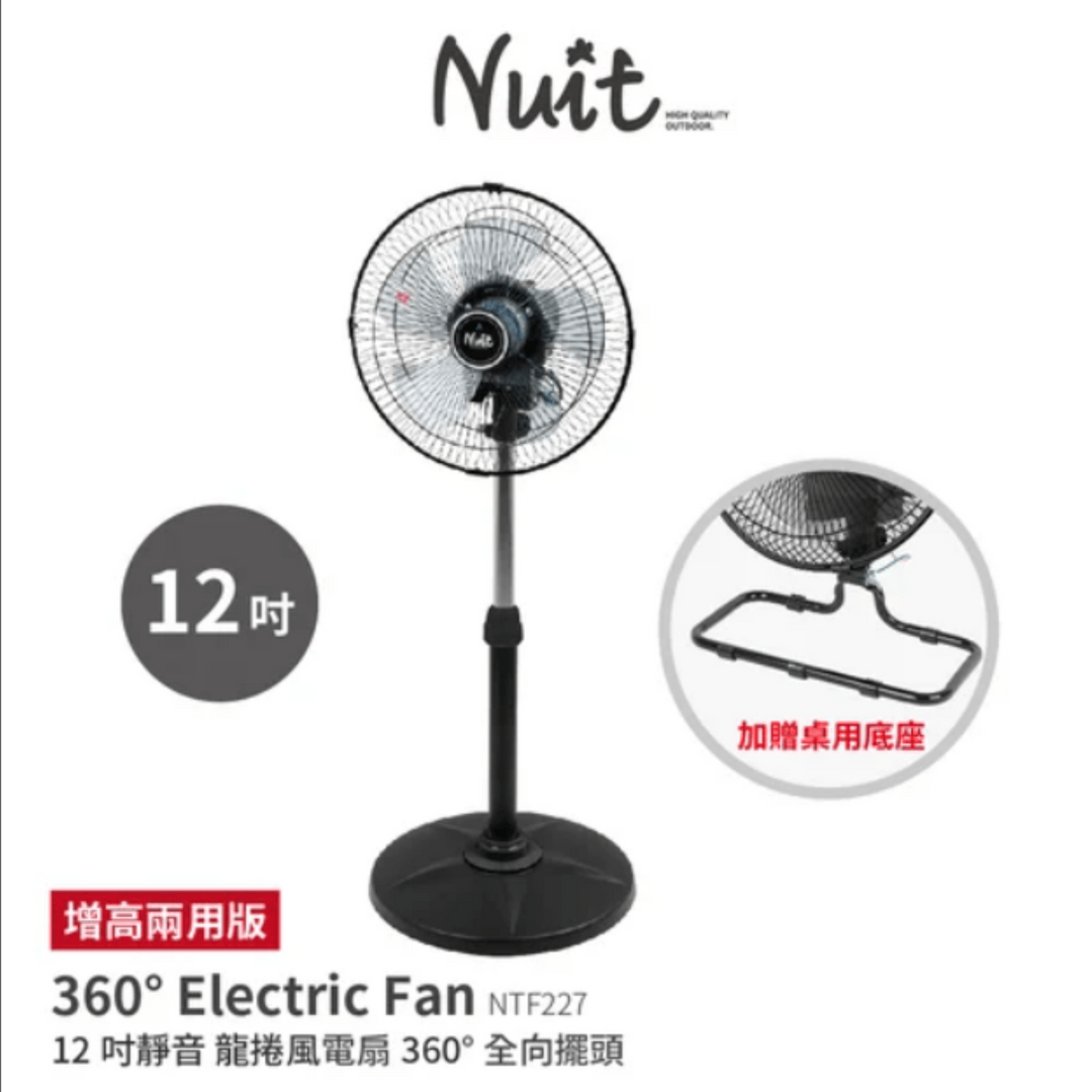 · 商品名稱:NUIT 努特|NTF227 12吋 (增高兩用版)靜音龍捲風360°旋轉風扇