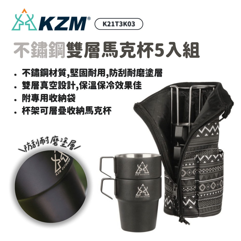 首頁 > 炊具系列 > KZM 韓國 | K21T3K03 不鏽鋼雙層馬克杯5入組(啞光黑)