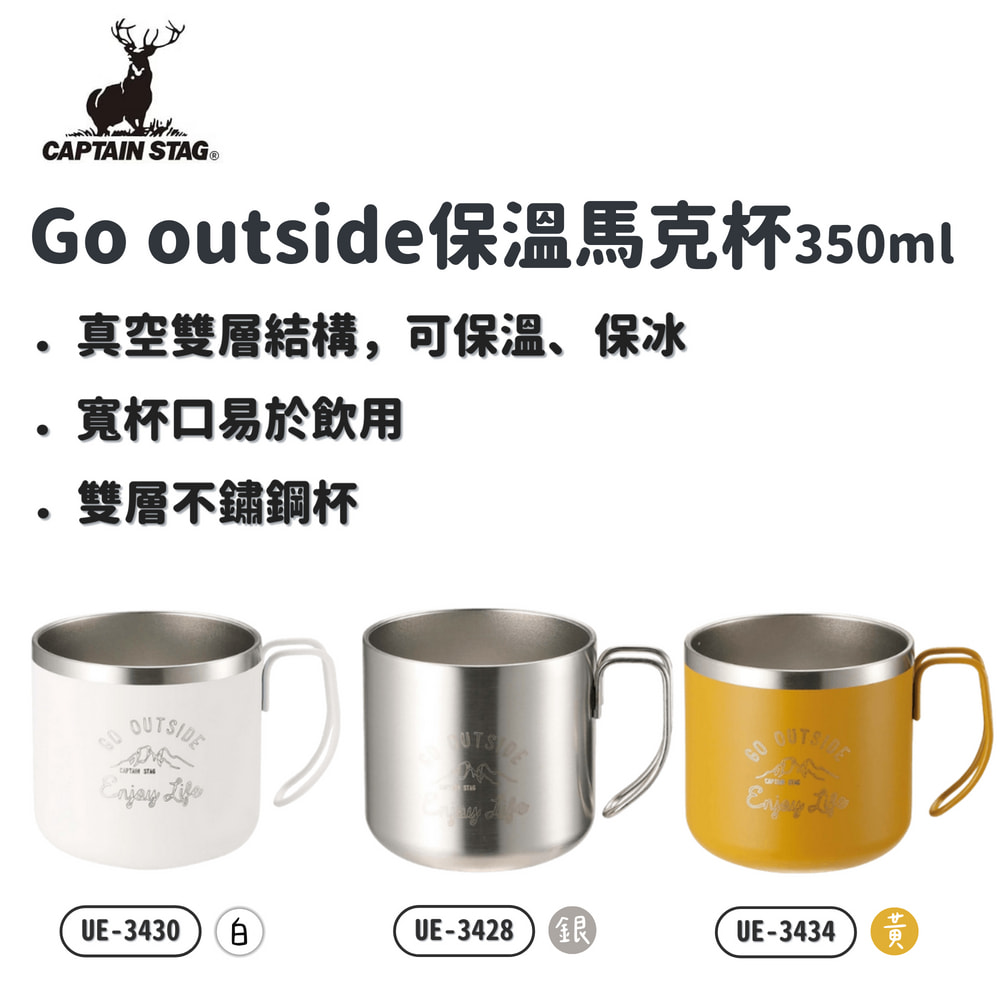 CAPTAIN STAG 日本 | Go outside保溫馬克杯350ml | 三色 | UE-3430、UE-3428、UE-3434 | 茶杯斷熱杯隔熱杯不鏽鋼杯 純淨白