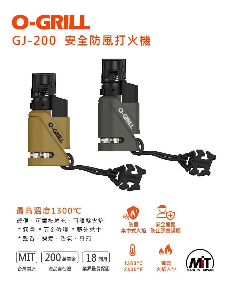 · 商品名稱:GJ-200 安全防風打火機 沙綠2入組
