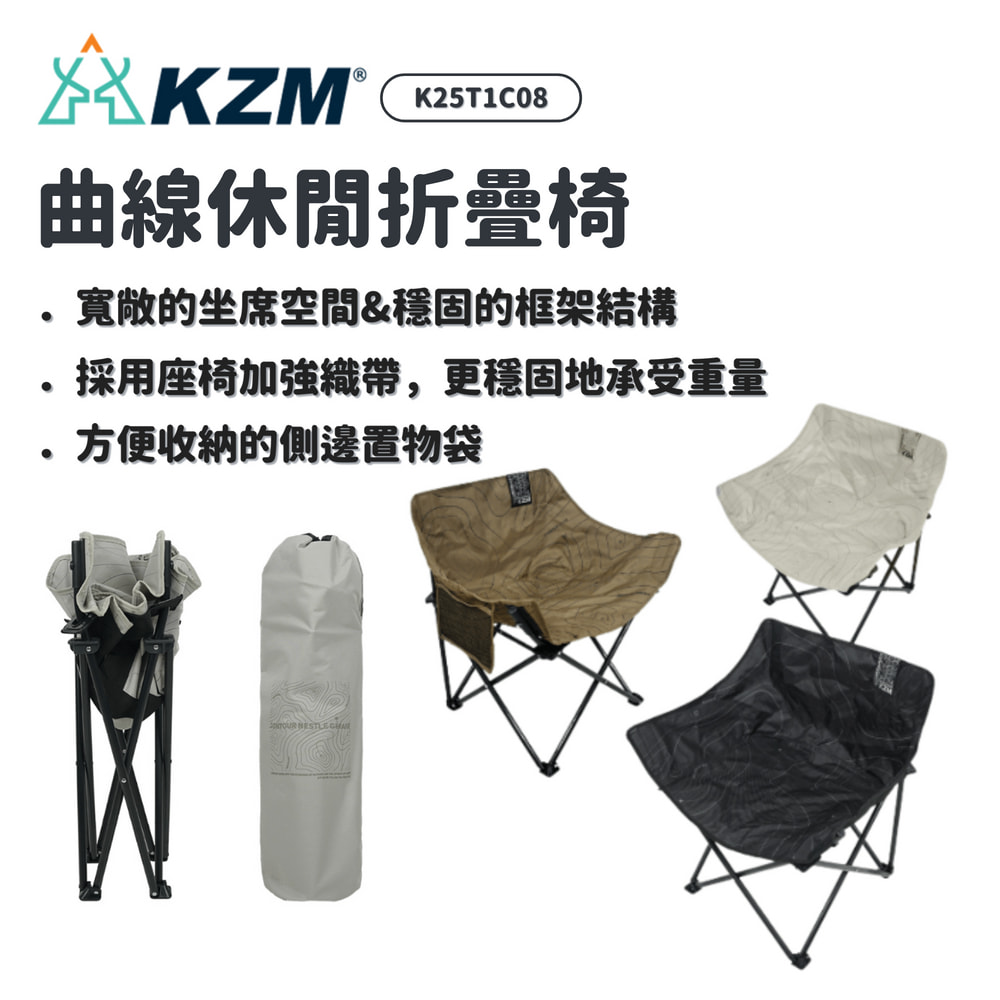 KZM 韓國 | K25T1C08 曲線休閒折疊椅 | 三色可選 露營椅 黑色