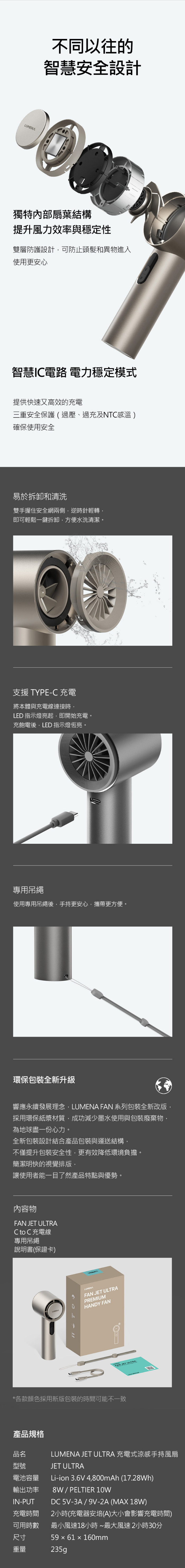.商品名稱:LUMENA JET ULTRA 充電式涼感手持風扇