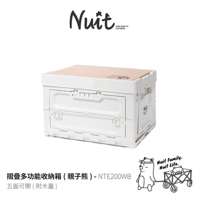 NUIT 努特 | NTE200W 折疊多功能收納箱 附木蓋 親子熊 | 附限量圖印蓋板 3秒快裝 露營收納