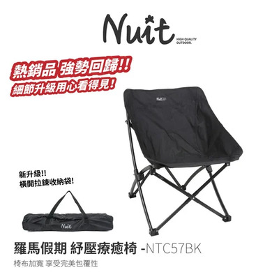 NUIT 努特 | NTC57BK 羅馬假期 紓壓療癒椅 石墨黑 | 買一送一優惠 露營椅 折疊椅