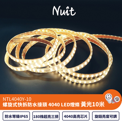 NUIT 努特 | NTL4040Y-10 全新IP65螺旋式快拆防水接頭 頂級4040三排極光LED防水燈條 (送收納盤)