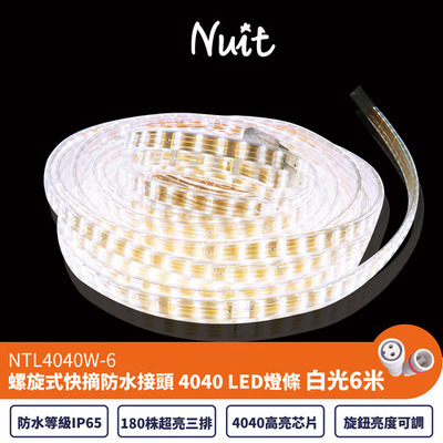 NUIT 努特 | NTL4040W-6 全新IP65螺旋式快拆防水接頭 6米 | 頂級4040三排極光LED防水燈條 (送收納盤)