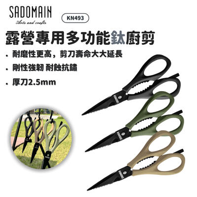 SADOMAIN 仙德曼 | KN493 露營專用多功能鈦廚剪 | 三色