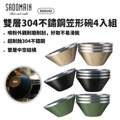 SADOMAIN 仙德曼 | SG0142 雙層304不鏽鋼笠形碗4入組 | 三色