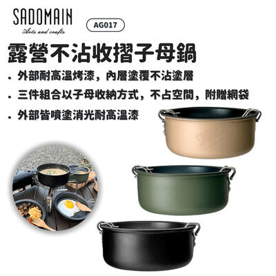SADOMAIN 仙德曼 | AG017 露營不沾收摺子母鍋 | 三色