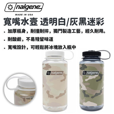 Nalgene 美國 | 寬嘴水壼 灰黑/透明白迷彩 限量 1L