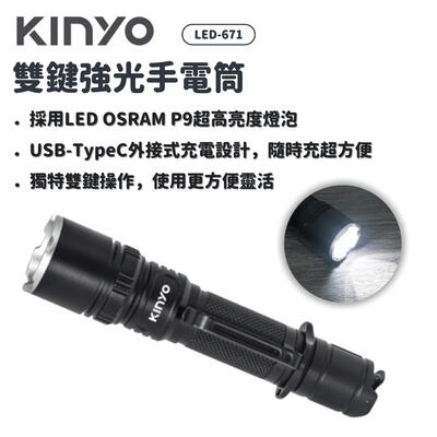 KINYO | LED-671 雙鍵強光手電筒 | 照明 充電式 手電筒