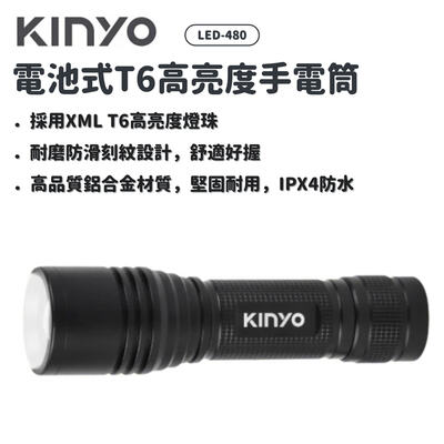KINYO | LED-480 電池式T6高亮度手電筒 | 手電筒 電池式 照明