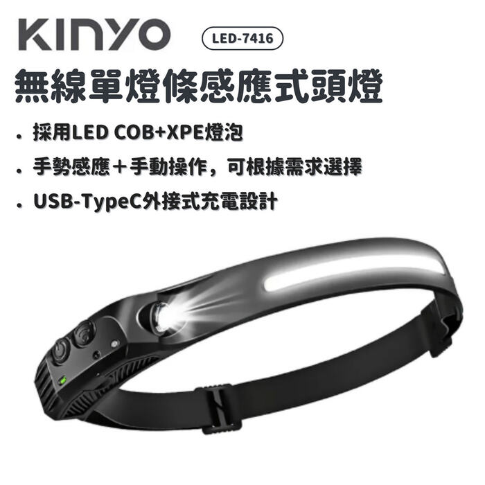· 商品名稱:KINYO | LED-7416 無線單燈條感應式頭燈