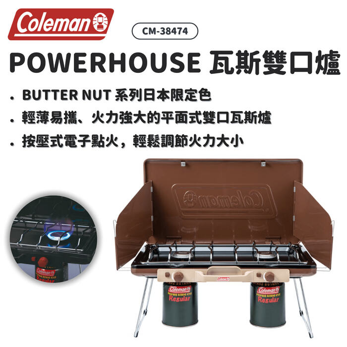 美國Coleman | CM-38474 POWERHOUSE 瓦斯雙口爐 | 胡桃黃
