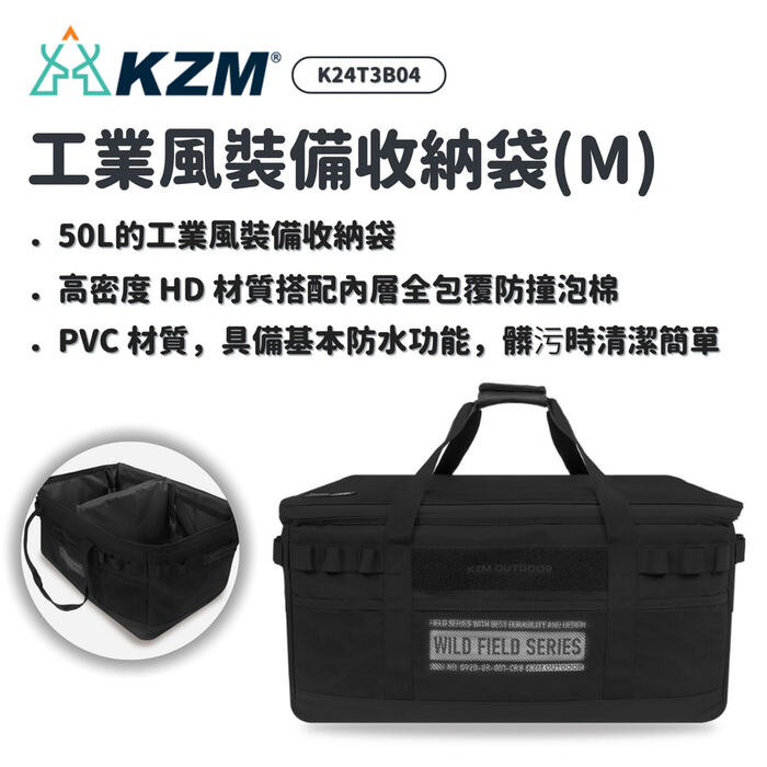◍ 容量為 50L的工業風裝備收納袋(L)。